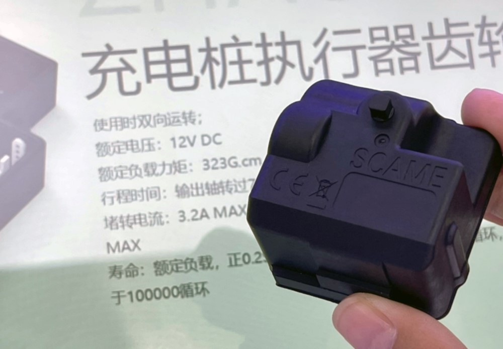 在碳中和的背景下,新能源汽车已然是未来趋势。因此,电动汽车充电桩以及配套的充电枪需求也随之扩大,新能源充电枪锁驱动模组应运而生。展会上,人们对它的工作原理充满好奇,仔细询问现场工程师的解说,了解到该产品是通过减速齿轮箱和丝杆结构的驱动,是充电桩在充电时将插头稳定在插座的固定扣位,保证充电安全。